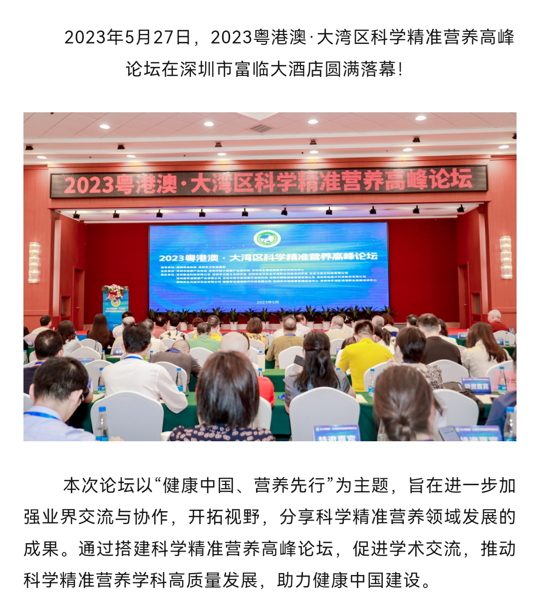 『2023粵港澳·大灣區(qū)科學(xué)精準(zhǔn)營(yíng)養(yǎng)高峰論壇』在富臨大酒店圓滿落幕