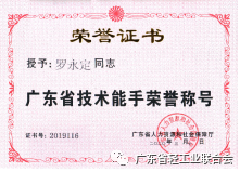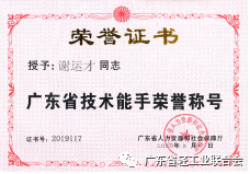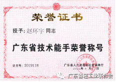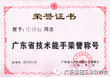 熱烈祝賀2019年廣東省職業(yè)技能競賽優(yōu)勝選手獲得“廣東省技術(shù)能手”稱號