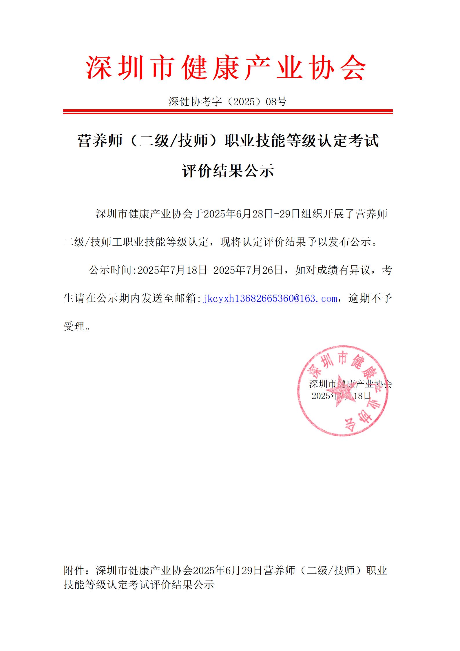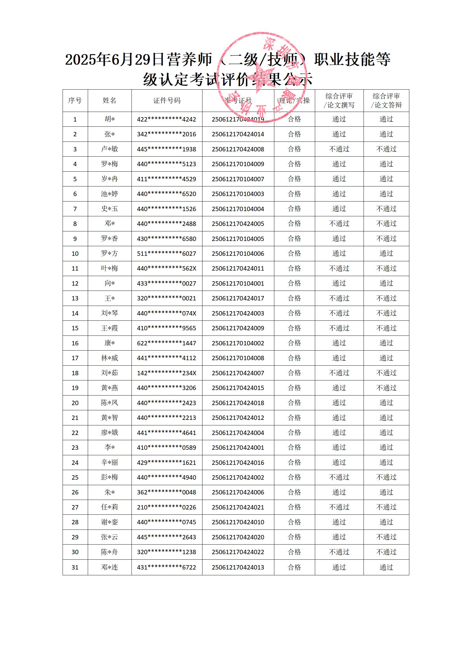 營養(yǎng)師(二級/技師)職業(yè)技能等級認(rèn)定考試 評價(jià)結(jié)果公示