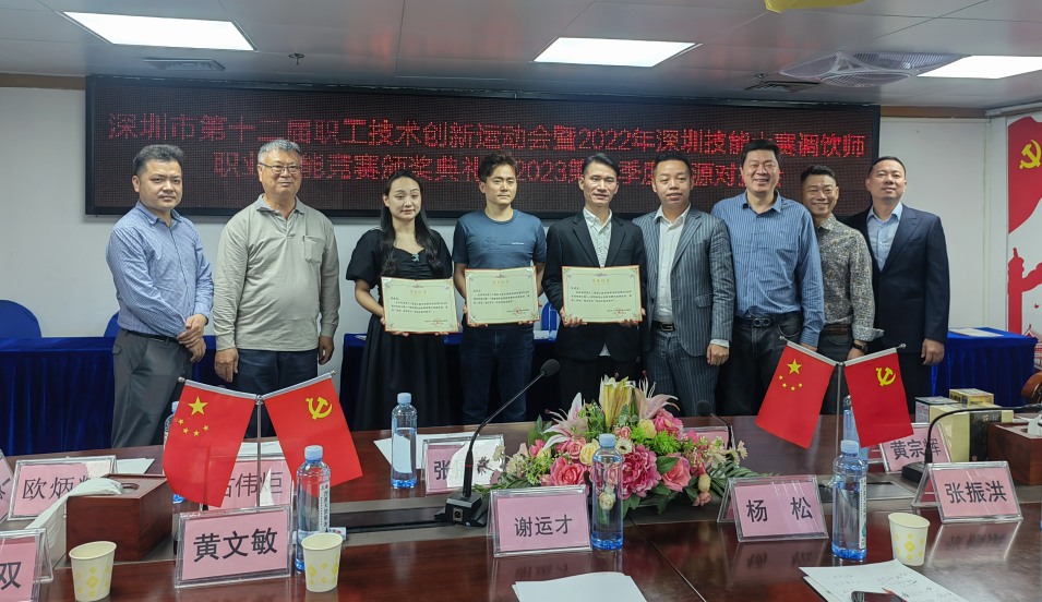 新聞快訊:2023年3月24日下午,“深圳市第十二屆職工技術創(chuàng)新運動會暨2022年深圳技能大賽調(diào)飲師職業(yè)技能競賽頒獎典禮暨2023第一季度資源對接會”在深圳市羅湖區(qū)振業(yè)大廈圓滿舉行。
